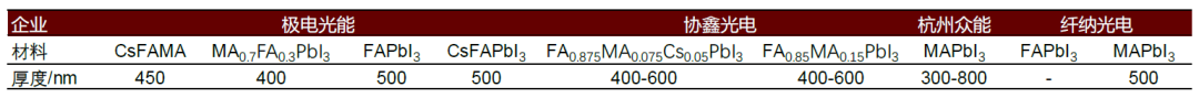 图表8:钙钛矿量产企业平面反式结构专利的钙钛矿层选择