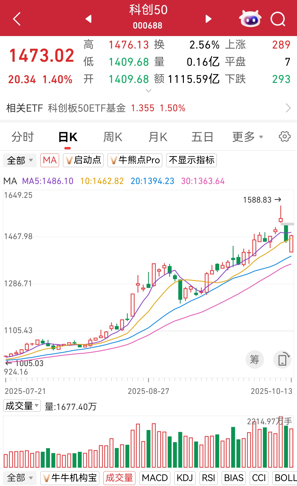 今日(10月13日),受外围市场巨震影响,A股大幅低开,科技股表现出较强韧性,科创50盘初直线拉升,不到2分钟时间就率先翻红,上证指数、沪深300、上证50等也仅以微跌报收,市场成交小幅萎缩至2.37万亿元。