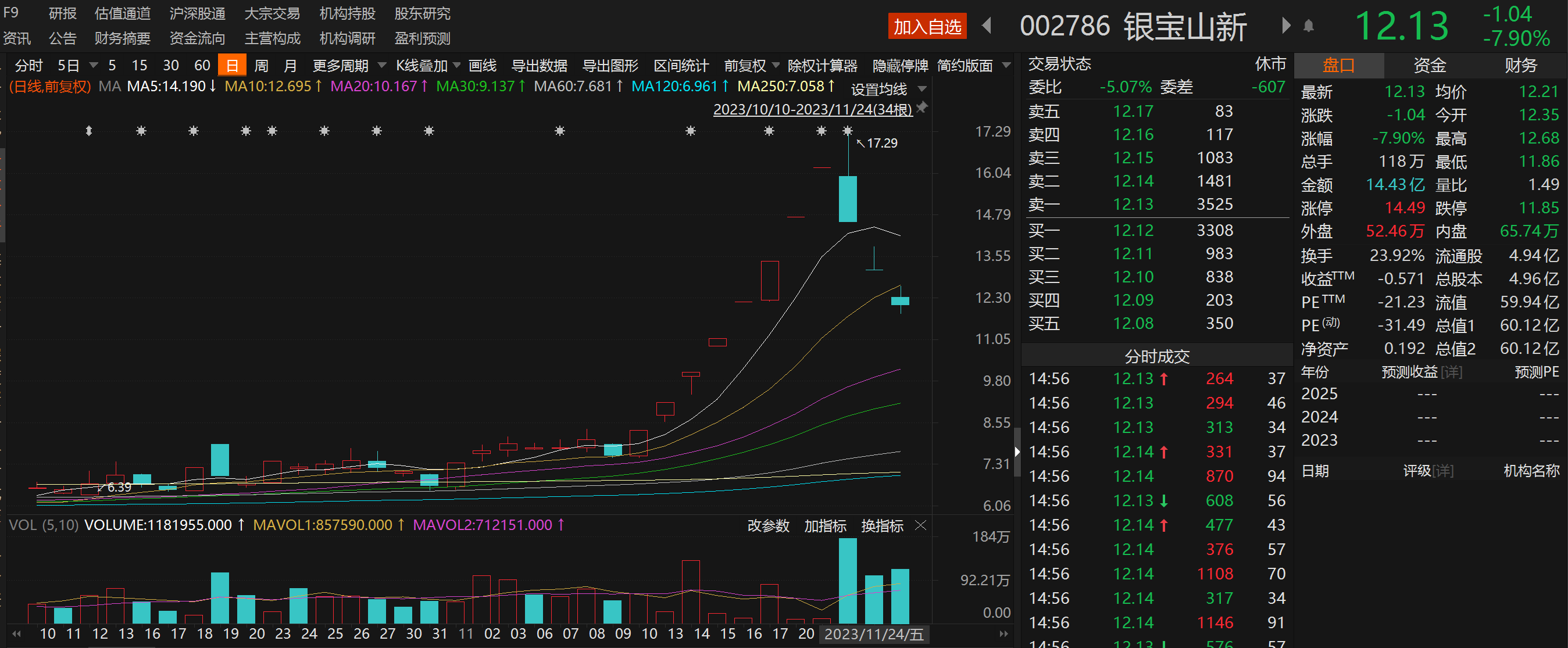 有华为和机器人概念的银宝山新周二收盘实现八连板,但随后股价迎来“高台跳水”,周三、周四收盘均封死跌停,周五收盘跌7.9%。公开信息显示,华为是银宝山新重要客户,公司与客户在5G散热、精度等方面共同开发,做了大量的技术储备和装备准备。银宝山新2022年10月28日互动易平台回复,公司智能物联网机器人有送餐机器人等产品。