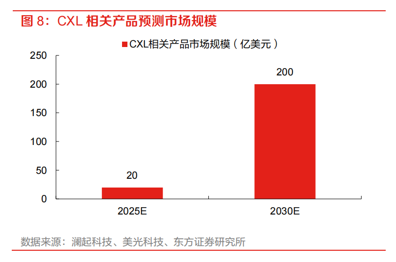 美光科技在2022年5月与投资者交流时曾预测CXL相关产品的市场规模,到2025年预计将达到20亿美金,到2030年可能超过200亿美金。
