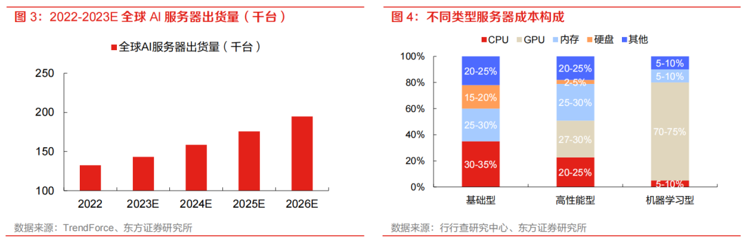 TrendForce数据显示,2022年AI服务器年出货量占整体服务器比重近1%,而2023年ChatGPT相关应用有望再度刺激AI相关领域,预计2023年出货量增长率可达8%,2022-2026年复合成长率将达10.8%。