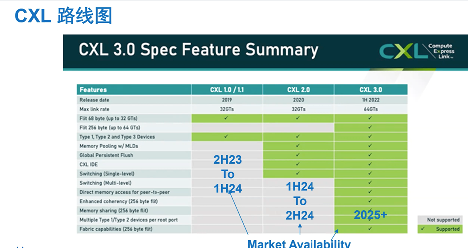 作为一项崭新的技术,CXL发展非常可谓非常迅速,过去四年时间CXL已经发表了1.0/1.1、2.0、3.0三个不同的版本,并且它有着非常清晰的技术发展路线图,业界也对它的未来充满期待。