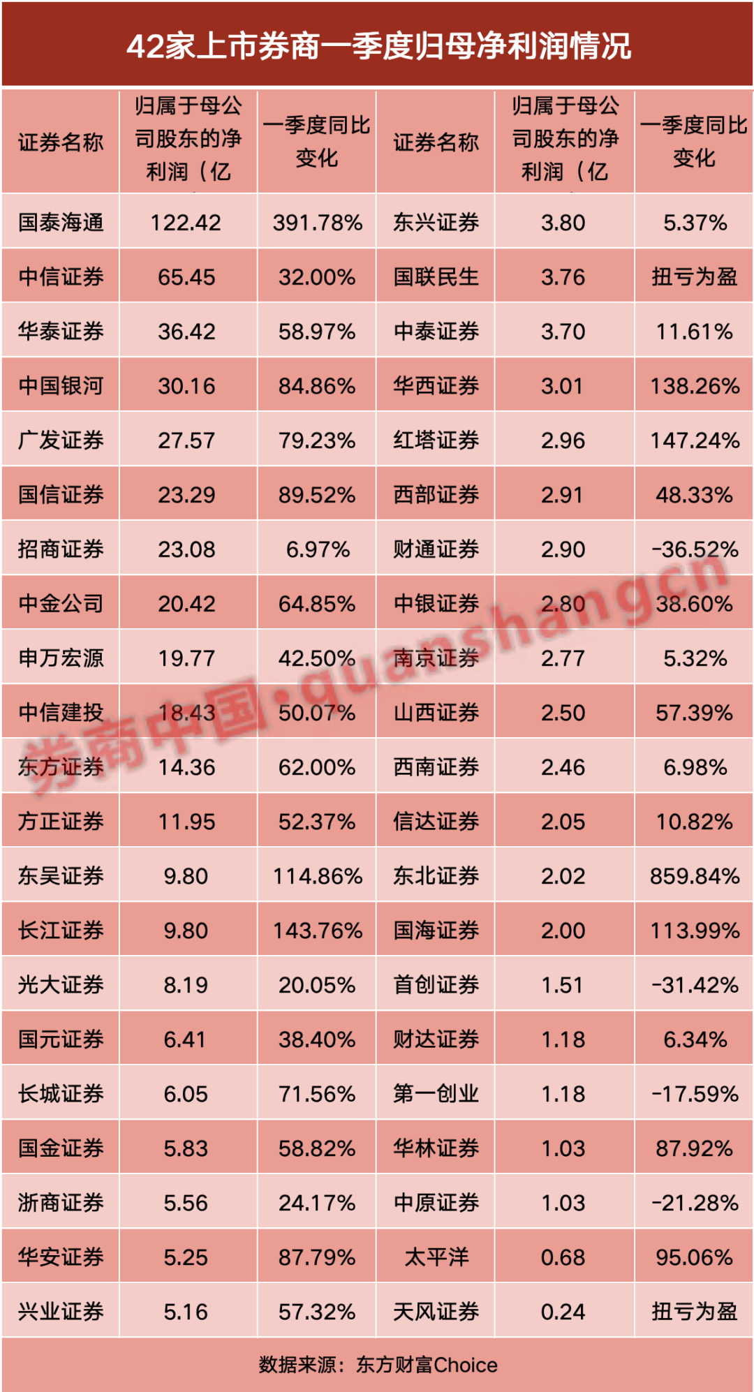 42家券商一季报发榜!7家净利润翻倍 自营最牛暴增23倍