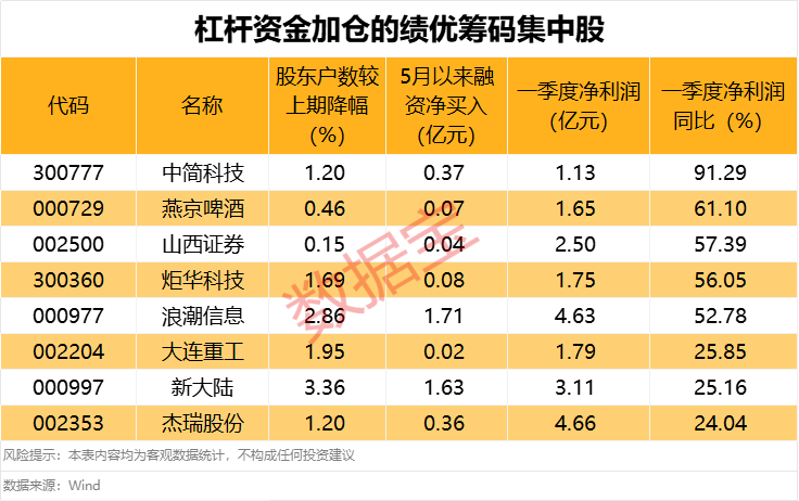 获杠杆资金加仓的筹码集中股中,有8股今年一季度净利润规模超1亿元,且同比呈现增长。