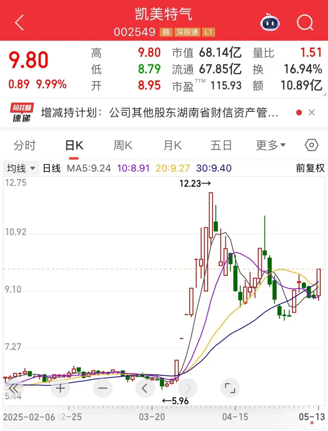 昨日收获涨停的光刻机概念股凯美特气于晚间披露股东减持计划,公司公告称,股东湖南省财信资产管理有限公司及其一致行动人计划15个交易日后的3个月内,合计减持不超过2086.04万股,占总股本的3%。减持方式为集中竞价和大宗交易,减持原因为自身资金需求。