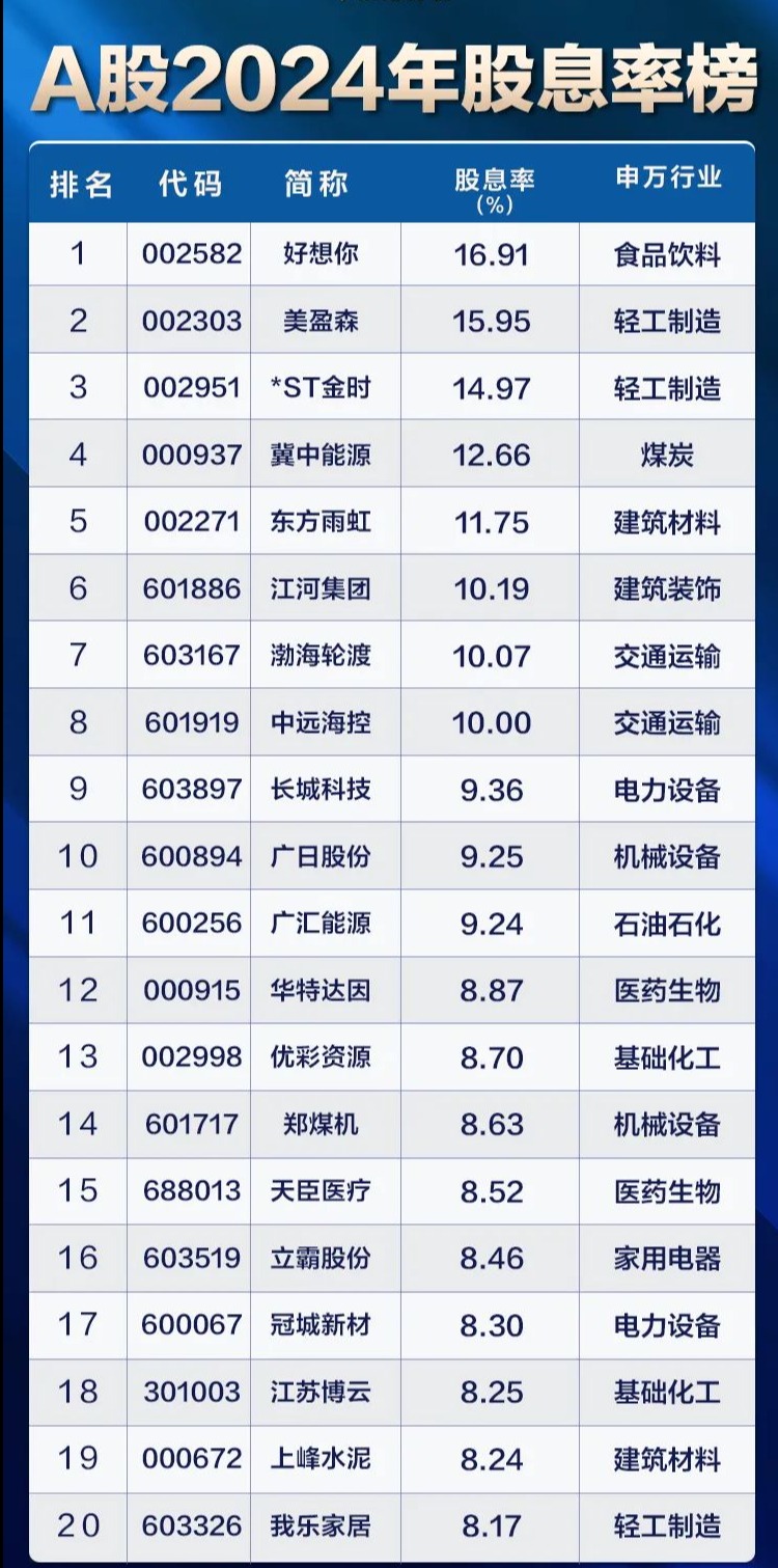 A股“分红王”又是它!连续10年高分红、高股息公司曝光