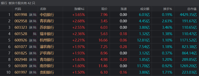 今日(5月30日),银行股再度活跃,截至收盘,中信银行、青农商行、苏农银行等股涨幅居前,工、农、中、建四大行也均录得小幅收涨。其中,杭州银行、成都银行2股今日股价再创历史新高。