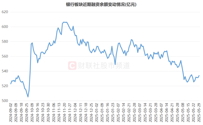 注:银行板块近期融资余额变动情况(截至5月29日数据)