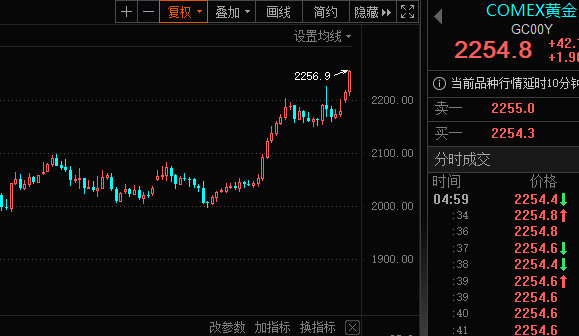 昨夜晚间,国际金价再创新高,伦敦金现、COMEX黄金期价双双突破每盎司2200美元关口,涨幅均接近2%。