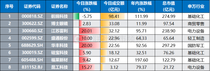 注:不计算TMT及机械设备股,今日成交额创上市以来新高的个股(截至2月21日收盘)