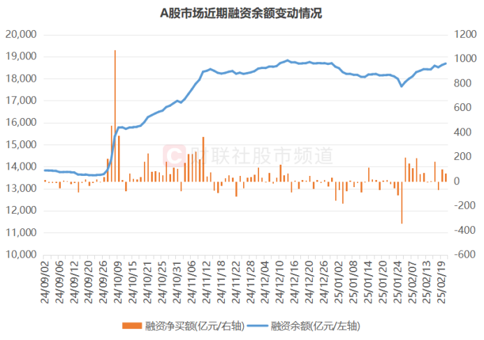 注:A股市场近期融资余额变动情况(截至2月20日数据)