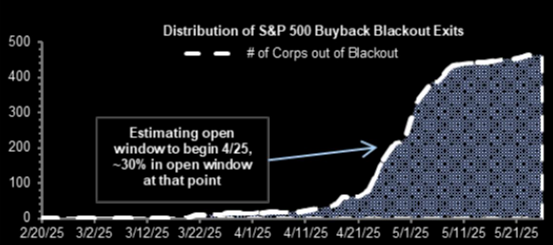 另外一个需要特别注意的是自4/25日开始,标普500的公司将逐步放开回购解禁,这会增加市场的流动性,为市场的反弹继续提供动力。
