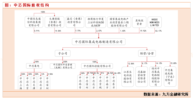中芯国际公司不存在实际控制人,持股份额分散,最大股东持股比例不超过 20%。公 司单一股东的持股比例均不超过 30%,中国信科和大基金持股占比排名第一第二。中芯国际最大的股东为大唐控股(香港)投资有限公司,持股比例为 14.06%,而大唐控股由中国信科全资拥有,中国信科直接持有 0.91%股份,因此 中国信科总计持有公司 14.97%股份。此外,鑫芯(上海)投资有限公司的全资子公司鑫芯(香港)持有 6.17 亿股,占比 7.77%,国家集成电路基金全资拥有鑫芯(上海)投资有限公司,为公司第二大股东。公司管理层,都是科班技术出生的大牛,都在集成电路行业拥有多年研发工作经验。刘训峰获委任为公司董事长、执行董事及董事会提名委员会主席,刘博士长期在大型产业集团工作,拥有逾 30 年的企业管理经验。梁孟松毕业于美国加州大学伯克莱分校电机工程及计算器科学系并取得博士学位,在半导体业界有逾 35 年经验,拥有逾 450 项专利,曾 发表技术论文 350 余篇,梁博士带领公司完成从 28nm-7nm 共 5 个世代的技术开发, 目前 28nm、14nm、12nm、FinFET(n+1)等技术均已进入规模量产。