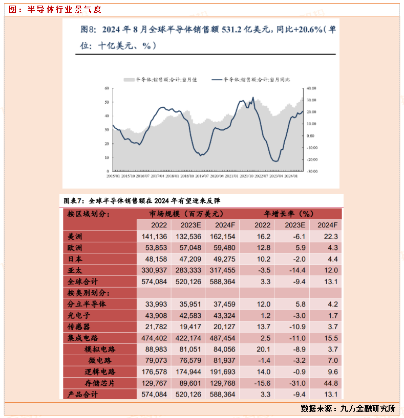 从2023年四季度开始,消费电子景气度触底回升,截止目前10月份,2024年以来,PCB行业下游景气度都保持较高增长,并且这种景气度,预期会随着美国降息开启,国内经济大刺激,AI人工智能产业趋势的加持下,继续维持到2025年左右。半导体行业协会(SIA)10 月 5 日宣布,2024 年 8 月全球半导体销售额达到 531 亿 美元,较 2023 年 8 月的 440 亿美元增长 20.6%,比 2024 年 7 月的 513 亿美元增长 3.5%。2024 年 第二季度,全球智能手机市场连续三个季度增长,出货量同比增长 12%,达 2.88 亿台。同时在生成式人工智能等创新技术和大众市场需求复苏的推动下,全球智能手机市场的出货情况有望持续上升。受益于终端电子产品销售的持续好转,全球半导体销售额也呈现出持续改善趋势,并且随着 AI 逐步往边缘装置扩散,预计将推动消费者迭代需求,电子行业需求有望加速释放。中芯国际作为晶圆代工企业,必将受益于半导体行业的持续复苏,公司营收/利润会逐步好转。