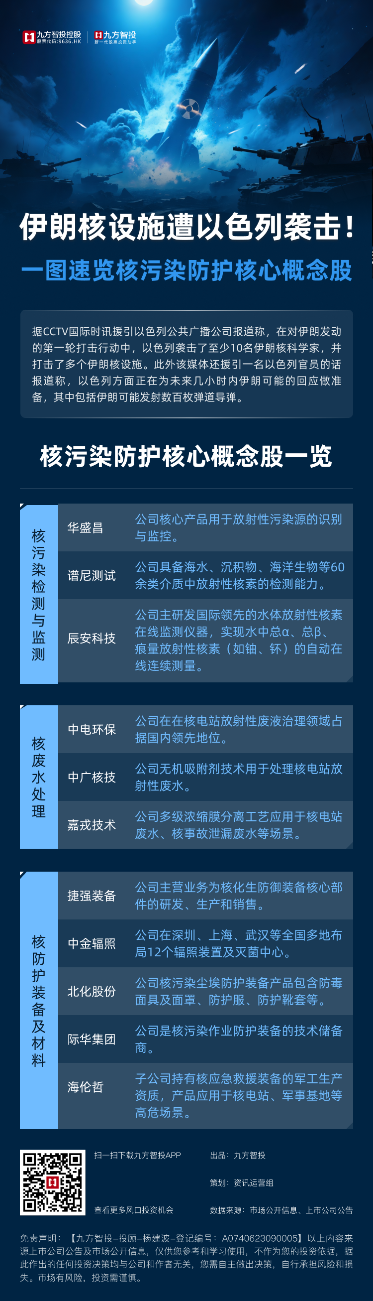 伊朗核设施遭袭击!一图速览核污染防护核心股