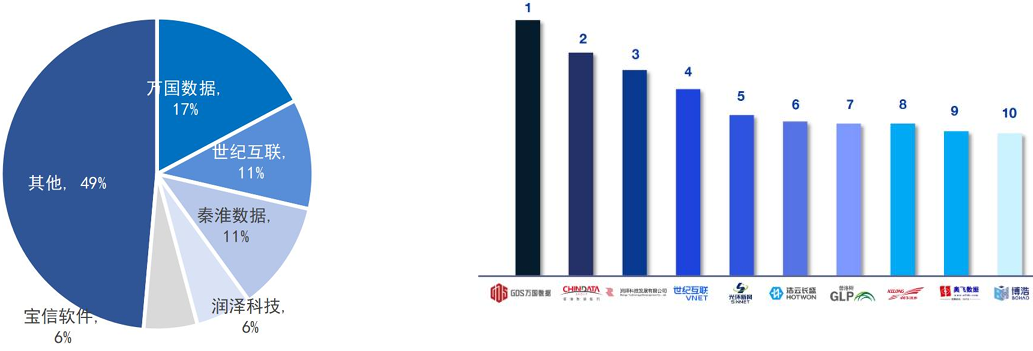 图:2023年中国Top5第三方数据中心服务商市场份额