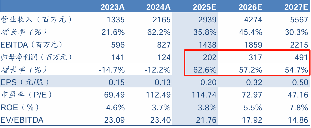 奥飞数据是国内领先第三方IDC服务商。公司主要向客户提供优质的IDC服务和配套网络服务业务。公司立足华南地区,持续在华北地区取得突破,并提前部署部分重点省会及重要城市等。2024年公司营收21.65亿元,同比上升62%;EBITDA为8.20亿元,同比增加34.16%。2025年Q1公司营收5.36亿元,同比上升40.7%;归母净利润0.52亿元,同比上升2%,环比上升189%。