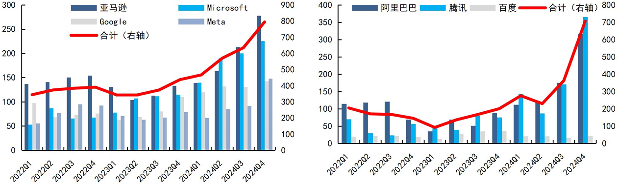图:海外头部互联网厂商资本开支(亿美元) 图:国内头部互联网厂商资本开支(亿元)