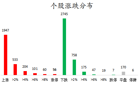 截至收盘,沪深两市合计1947只个股上涨,2745只个股下跌,平盘个股170只,停牌的个股6只。不含当日上市新股,共有56只个股涨停,7只个股跌停。连续涨停天数看,ST曙光已连收8个涨停板,连续涨停板数量最多。