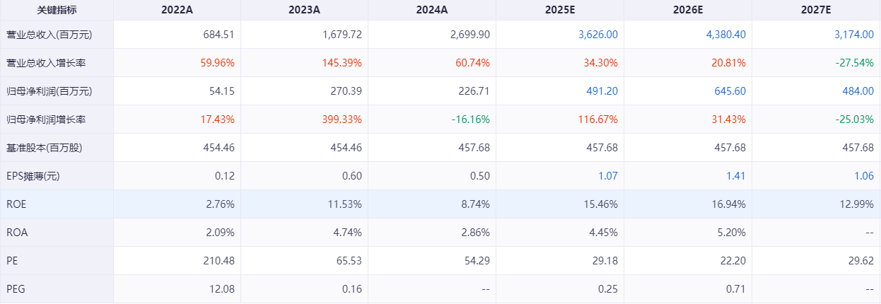 事件:公司发布2024年报和2025年一季报,2024年,公司实现收入27.00亿元,同比增长60.74%,实现归母净利润2.27亿元,同比下降16.16%;2025年一季度,公司实现收入5.10亿元,同比增长198.95%,实现归母净利润0.84亿元,同比增长2253.57%。