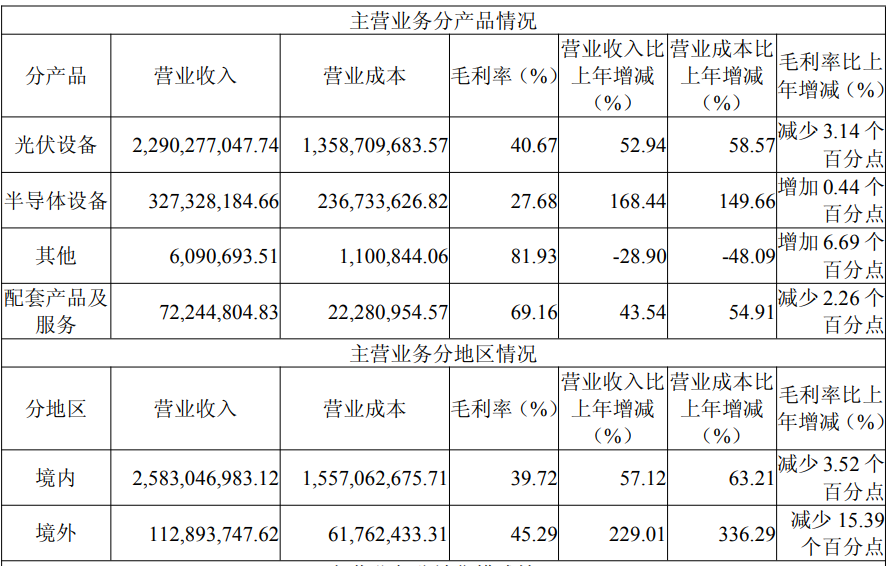 点评:2024年,公司光伏和半导体设备均取得大幅增长,半导体设备实现收入3.27亿元,同比增长168.44%,光伏设备实现收入22.90亿元,同比增长52.94%,主要原因为公司产品工艺覆盖度和技术水平持续提升,获得客户验收的设备数量增长,前期在手订单陆续实现收入转化所致。此外,公司盈利水平有所下滑,主要原因为研发费用上升(2.67亿元,同比增长50.78%)以及减值增加(资产减值损失2.36亿元,同比减少195.19%,信用减值损失1.44亿元,同比减少128.24%)所致。