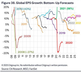 这样的韧性表现,或许会让人想起过去几年 —— 当时全球经济面对高通胀、利率上升以及地缘政治压力等一系列挑战,表现也超出预期。2023 年和 2024 年,年初时该行对全球经济的预期都较为谨慎,预计全球经济增速低于 2% ,但由于实际增长好于预期,该行不断上调预测。
