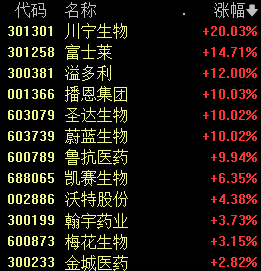 另外,合成生物概念上午再度大涨,川宁生物、富士莱、溢多利等个股大涨,对医药股情绪面也有较大提振。