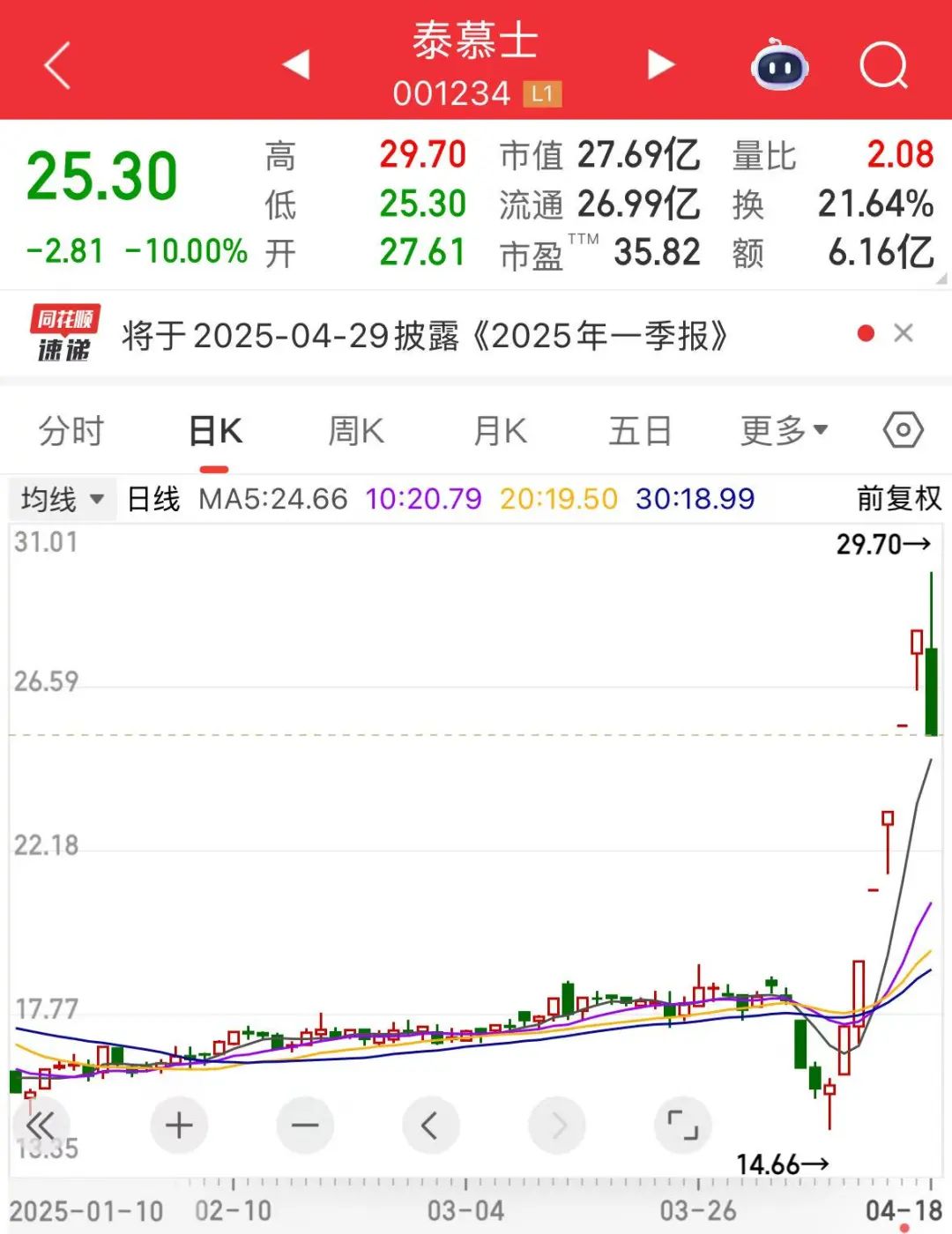 从收盘后的市场表现来看,多只热门股今日出现调整。华贸物流、麦趣尔此前3个交易日均录得涨停板,今日收盘跌停;泰慕士此前6个交易日均涨停,今日盘中一度由跌停板翻红,收盘时还是被砸跌停。