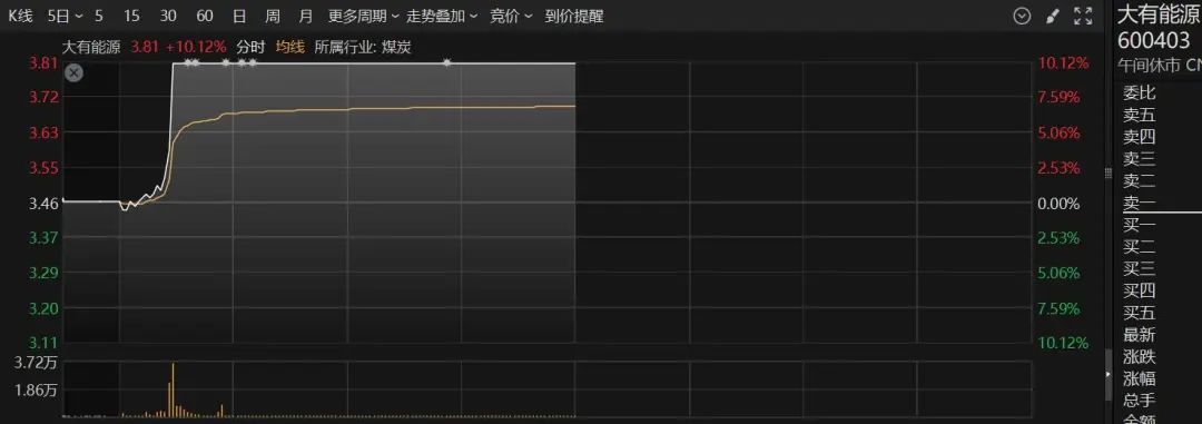 煤炭股早间逆势走强,板块盘中一度涨近2%,创1个半月来新高。大有能源垂直拉涨停,辽宁能源、云煤能源等盘初亦直线拉升触及涨停。