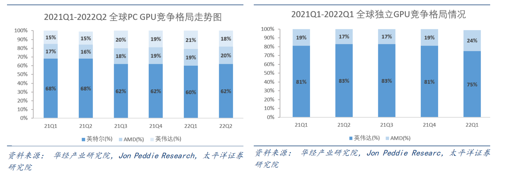从竞争格局来看,尽管从全球范围来看GPU市场一直保持着较高增速,但真正的玩家只有英特尔,英伟达,AMD等少数海外巨头。