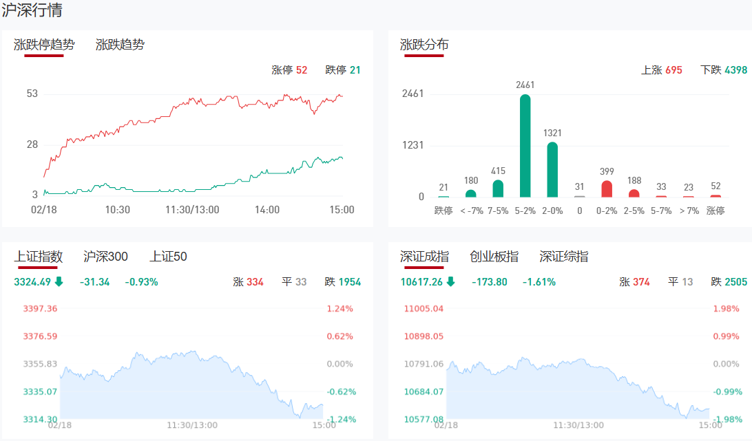 盘面上,热点较为匮乏,个股跌多涨少。上涨方面,银行股逆势走强,中、农、工、建四大行盘中均再创历史新高,齐鲁银行盘中一度涨超5%;受相关利好刺激,锂电、光伏、储能板块早盘冲高,但午后有所回落,截止收盘,星云股份、华自科技、杉杉股份等股维持涨停。下跌方面,高位DeepSeek概念股集体退潮,华扬联众、浙数文化、梦网科技、泛微网络、杭钢股份、日海智能等多股跌停,10余股跌幅在10%以上。影视院线板块亦表现落后,光线传媒盘中一度跌超10%,横店影视、欢瑞世纪、金逸影视等纷纷下挫。