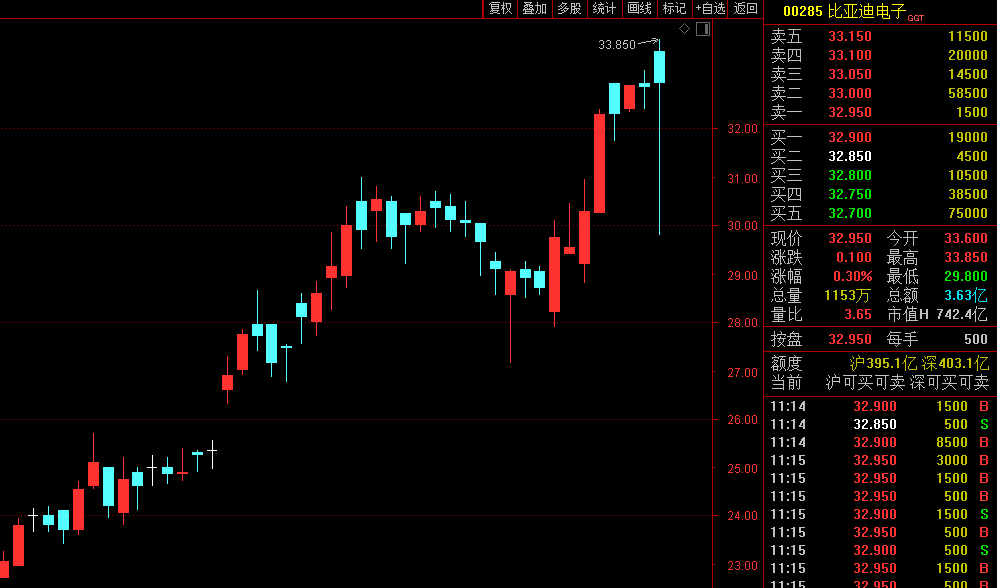 消息发布后,比亚迪电子早盘高开低走,目前公司股价翻红,不过盘中最大跌幅超9%。