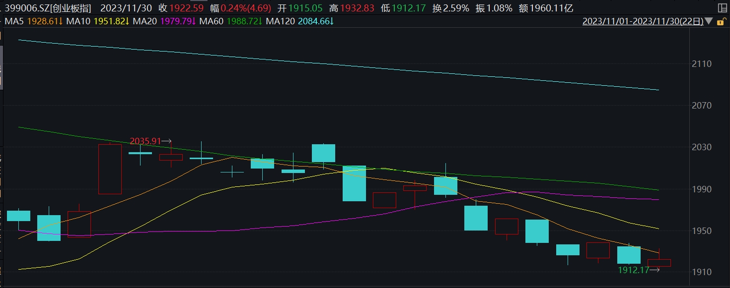创业板指期间整体跌2.32%。