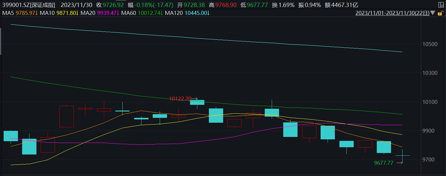 深证成指有9天上涨,期间整体跌1.39%;