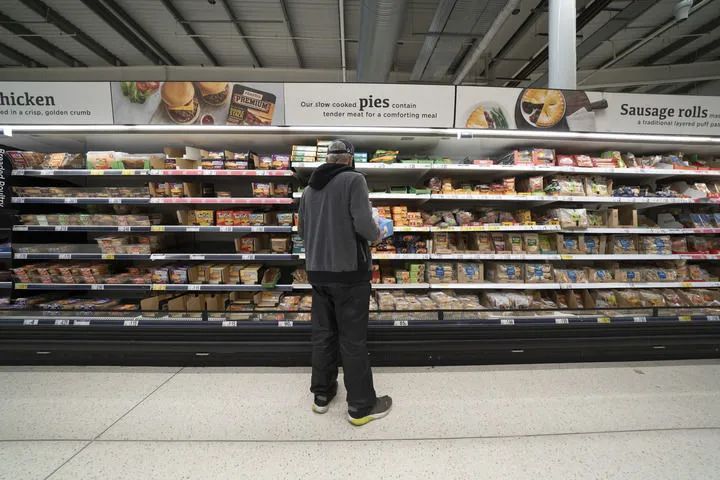 4月13日,一名男子在英国曼彻斯特一家超市内购物。新华社发(乔恩·休珀摄)