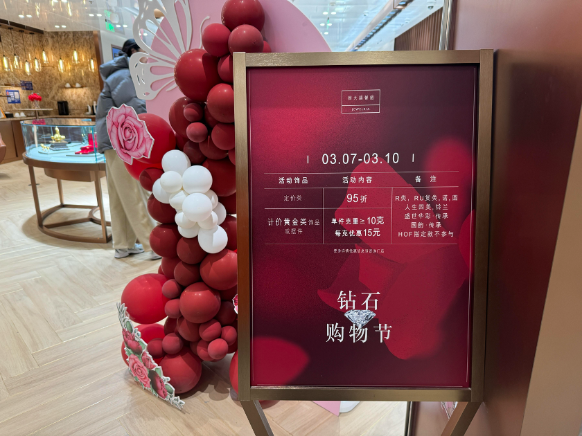 据中国黄金门店店员透露,以往春节期间是黄金销售的旺季,之后就回归淡季。但近期针对妇女节的活动确实折扣力度甚至比春节期间还要大。“每克优惠80元。”
