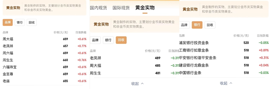 目前,周大福、老凤祥、周六福、周生生、老庙黄金等主流品牌的黄金实物价格均超过650元/克,且仍有上涨趋势。