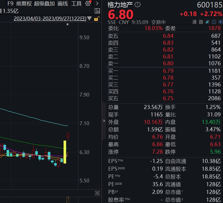 9月27日,格力地产开盘涨1.36%,随后股价震荡拉升,截至发稿,涨2.72%,格力地产昨日涨停。