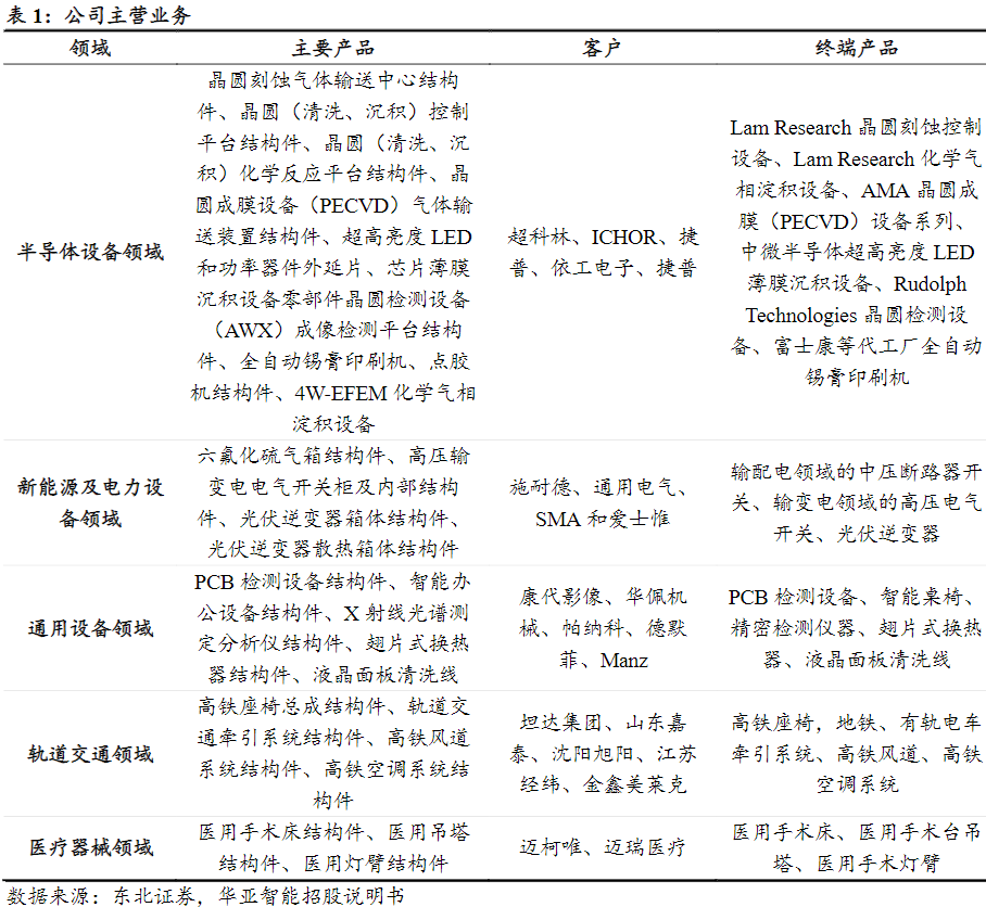 研报菌划重点:公司目前结构件业务涵盖半导体设备领域,和新能源及电力设备、通用设备、轨道交通、医疗器械等其他领域。