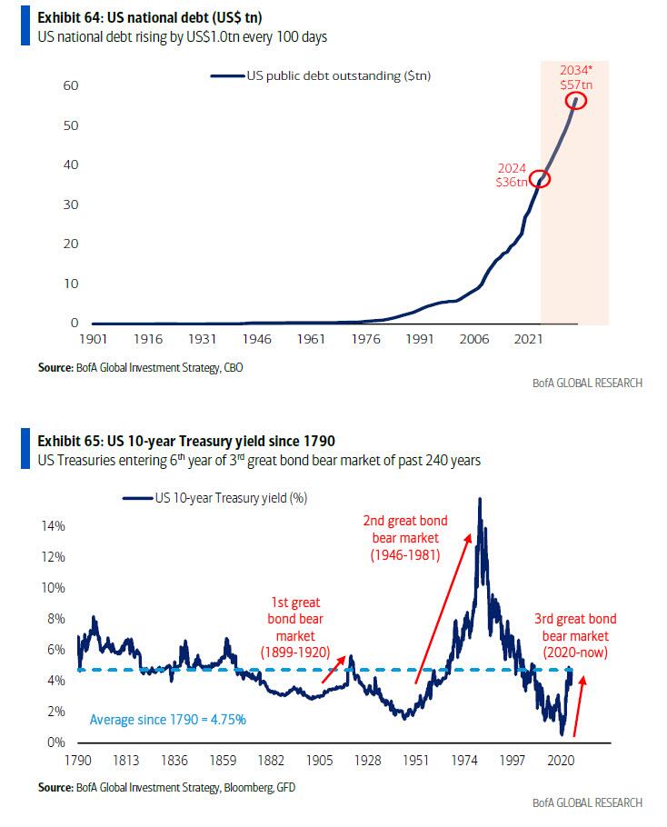 美银表示,随着历史上利率最低点时代的终结、财政过剩、通货膨胀……“除了债券什么都投”的交易是过去5年华尔街最强劲的趋势;而未来5年,无论是自我驱动还是市场强迫,美银都相信政府财政过剩的时代终将结束,资产市场“除了债券什么都投”的定价将被逆转。