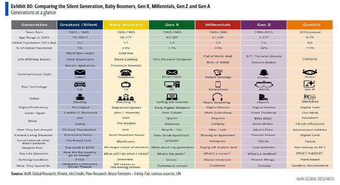美银指出,未来10年,预计全球消费支出将增加,尤其是Z世代(1995年至2009年间出生的一代人)和老龄化的婴儿潮一代(1946年至1964年出生的人)。