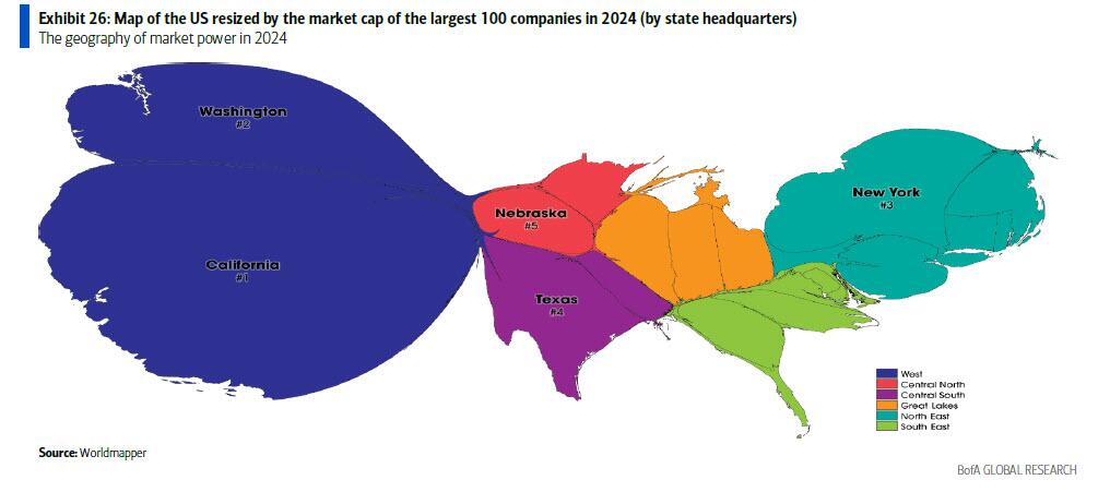 美银指出,美国股市此前从未如此高度集中——由少数几家超大市值公司(七巨头)主导。 然而,随着人工智能的效益扩大到更广泛的企业,以及民粹主义政客通过税收和监管来缓解赤字和安抚人工智能对劳动力市场的影响,这些垄断性科技公司对资本和回报的垄断,将在未来几年触顶。