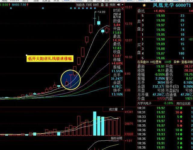 这样的K线,就叫做低开大阳线,也可以叫做送礼线。它意味着底部的到来或者即将强势增幅。