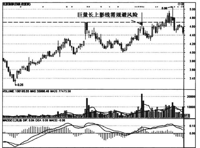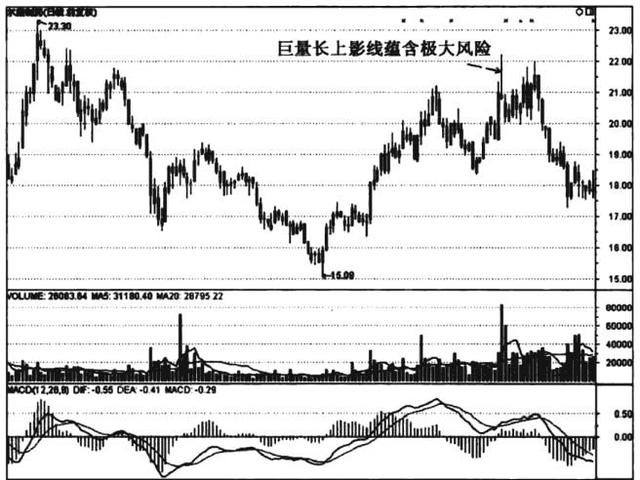 长上影线如果伴随巨量,则更是主力资金诱多出逃,是反转的前兆。
