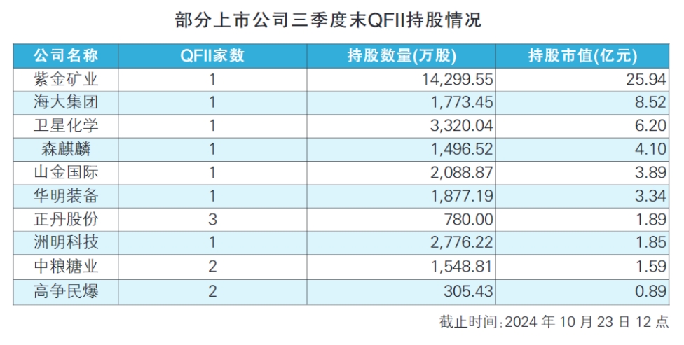 伴随上市公司密集发布2024年三季报,众多外资机构现身前十大股东榜。