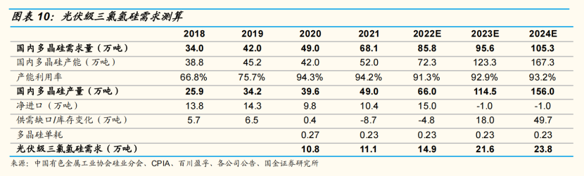 国金证券陈屹在6月1日发布的研报中表示,碳中和背景下国内多晶硅企业快速扩张,光伏级三氯氢硅需求迎来爆发期。测算出2022-2024 年对光伏级三氯氢硅的需求量分别为14.9、21.6、23.8万吨。