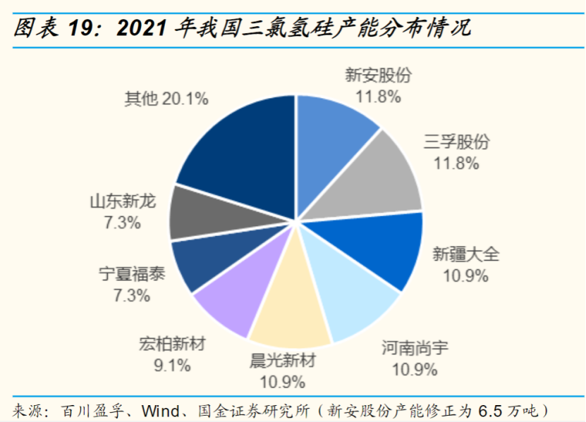 2021年底,三氯氢硅行业内产能位于前列的上市公司主要为新安股份、三孚股份、晨光新材和宏柏新材等。