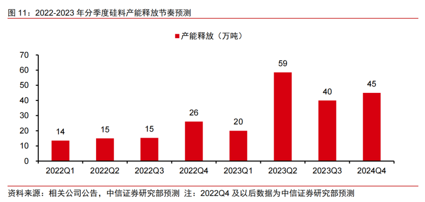 中信证券王喆在10月11日发布的研报中表示,根据2022-2023年多晶硅厂家扩产计划,2022Q4季度与2023Q2季度将迎来硅料产能释放密集期,可能会存在光伏级三氯氢硅出现短暂的供给缺口,届时有望提振三氯氢硅价格,预计三氯氢硅高景气度有望维持至2023Q2。