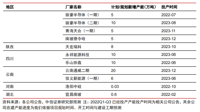 据悉,三氯氢硅为多晶硅生产及硅烷偶联剂生产的必备原材料。中国为多晶硅的主要生产者,且新增产能主要集中于中国。多晶硅产能扩张十分迅速,中信证券王喆在10月11日发布的研报中统计得到,2022年新增产能将达约70万吨,2023 年预计新增产能约164万吨。