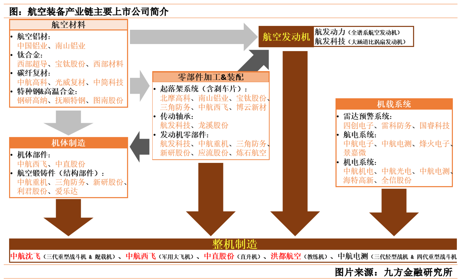 航空装备板块既是支撑军工行业指数趋势性行情的核心驱动,也是验证行业景气主线回归的最终参考。市场层面上,航空装备不仅是总体市值规模最大的细分行业,也是个股市值龙头质量最高、数量最多的细分板块;国防军工行业的趋势性机遇离不开航空装备板块的引领发力。产业层面上,航空装备目前仍以各类国产先进航空作战飞机平台与装备为主,是主要军工子行业中同时兼具产品高价值属性与高效率生产交付特征的首要方向;所以,中航沈飞、中航西飞、航发动力等主机总装平台的需求订单表现对于判断A股军工行业板块的景气趋势具有决定性意义。
